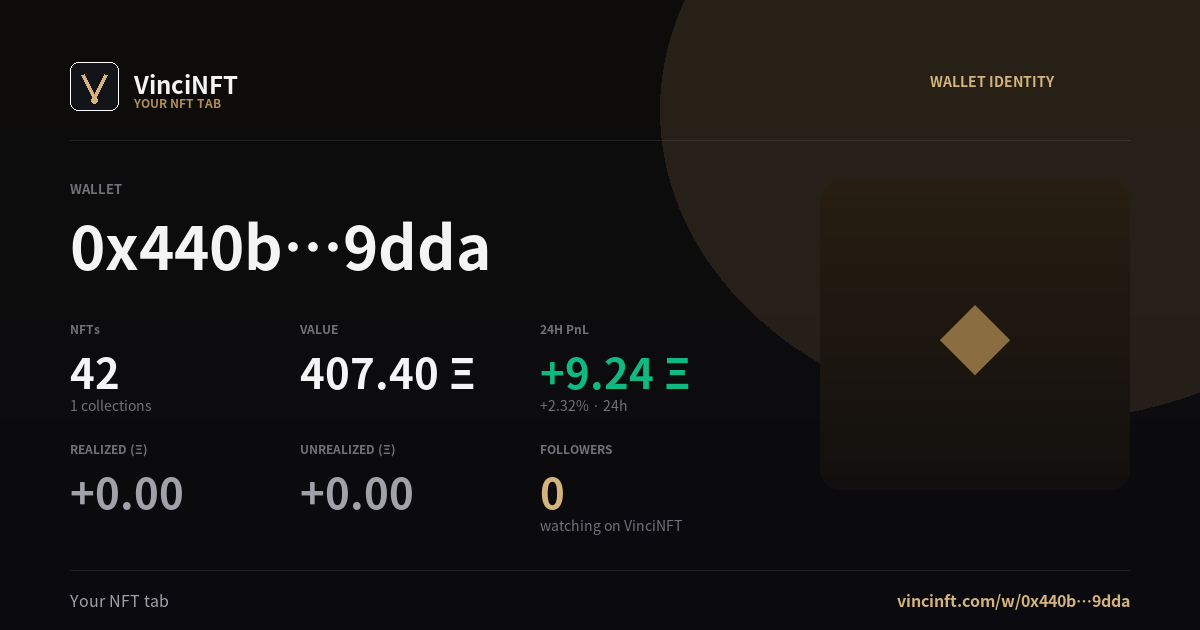 Holding 42 NFTs worth 411.60 Ξ across 1 collection — quiet today.