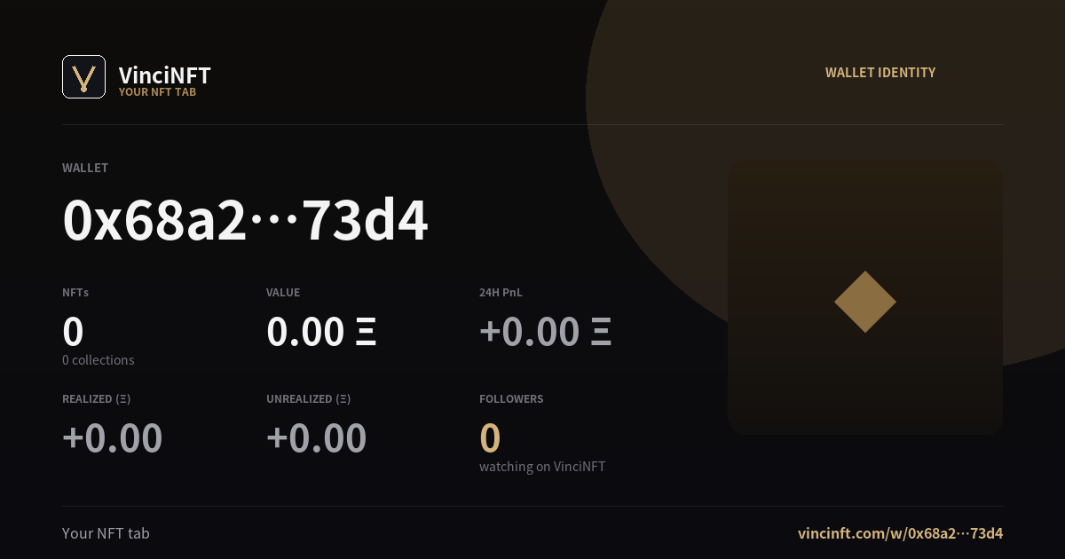 This wallet doesn't hold any collections VinciNFT tracks, and we haven't indexed any of its trades. Double-check the address on Etherscan.