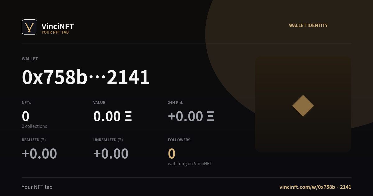 This wallet doesn't hold any collections VinciNFT tracks, and we haven't indexed any of its trades. Double-check the address on Etherscan.