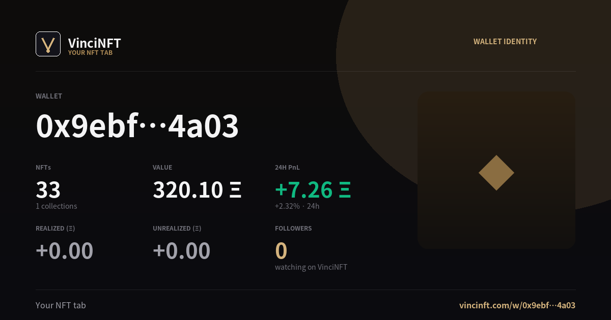 Holding 33 NFTs worth 323.40 Ξ across 1 collection — quiet today.