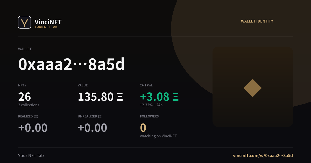 Holding 26 NFTs worth 137.20 Ξ across 2 collections — quiet today.